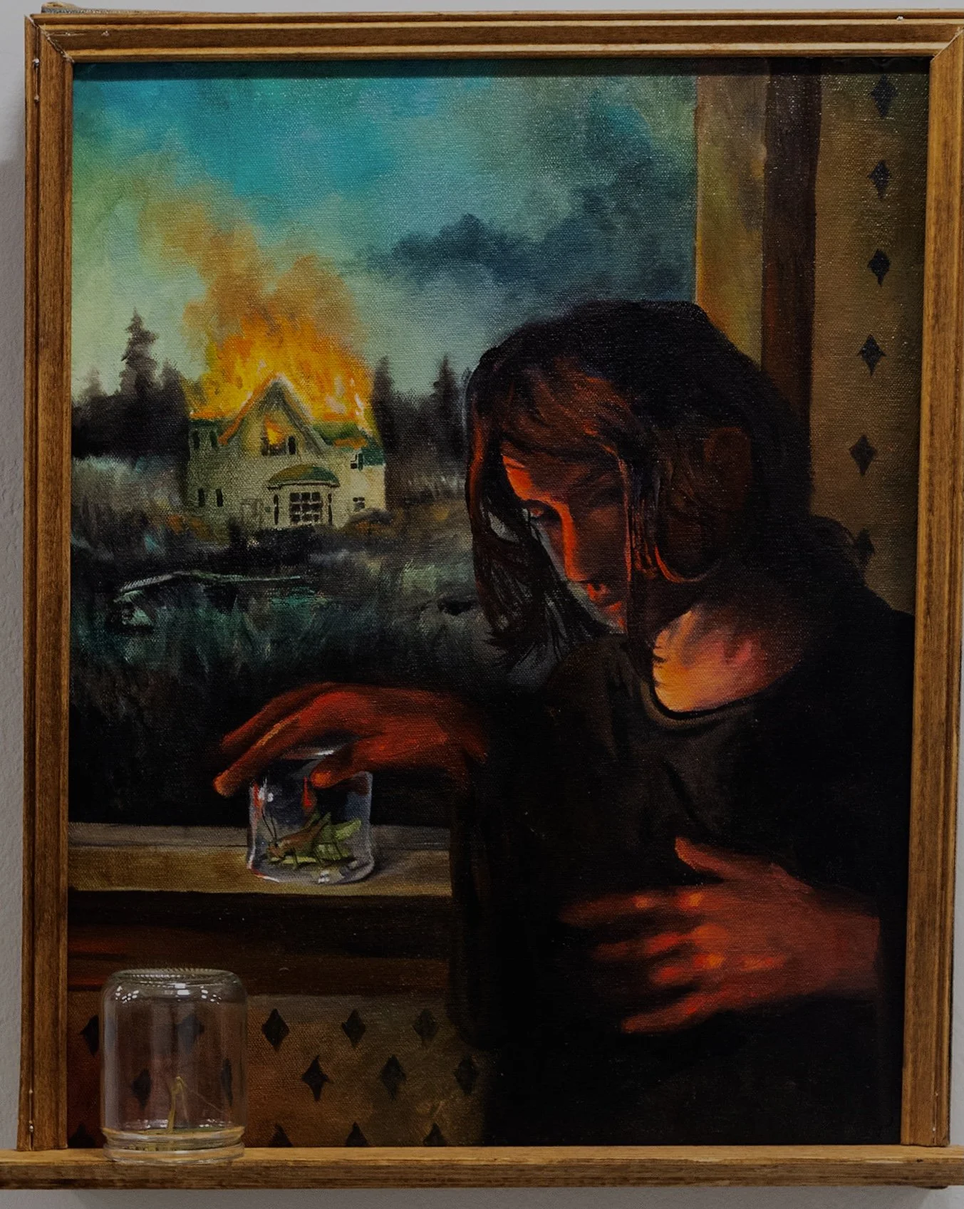 When the physical space you call home is suddenly uprooted and removed from your life, it is metamorphosed into a memory which exists within yourself. Before you, there are three windows into my memory of home. Inside each window, there are live fragments of comfort, anxiety, loss; these windows are portals to a subconscious world where my home now exists. Each piece is a connective thread from this reality into a layer of surreality where change and growth are as easy to accept as they would be in a dream. As difficult as change is to comprehend, these works are one step I have taken towards memorializing the past and finding home again.